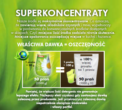 Nasze środki są maksymalnie skoncentrowane. Co oznacza, że zawierają więcej składników czynnych i mniej wypełniaczy w porównaniu do konwencjonalnych środków dostępnych